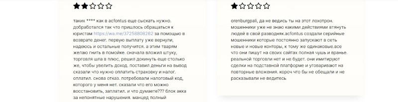 В результате клиенты остаются без денег, погрязшими в долгах и кредитах, доверившись сотрудникам брокера Acfontus. Они не осознают, что все препятствия при выводе средств – это лишь тщательно спланированные манипуляции и хитроумные уловки мошенников.
