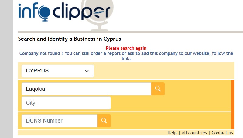 Также вызывают сомнения и данные о стране регистрации компании. Мошенники утверждают, что страной их регистрации является Кипр, однако свидетельство о регистрации на сайте отсутствует. Проверка данных в официальном реестре показала, что компания с таким именем не существует, в чем можно удостоверится на скриншоте.